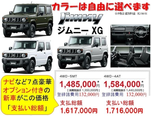 ジムニーxgの新車が安い 値引は25万円相当の ナビ Etc コーティング 希望ナンバー マット バイザー オイル交換 点検 が標準装備 無料 で付いています 香川県 高松市 三木町 さぬき市 グー カーセンサー グーネットには未掲載 有限会社 熊野